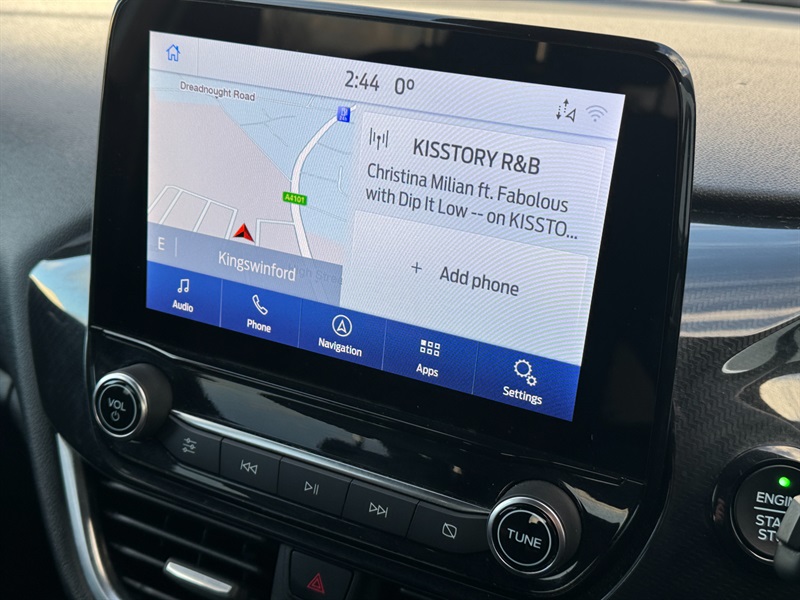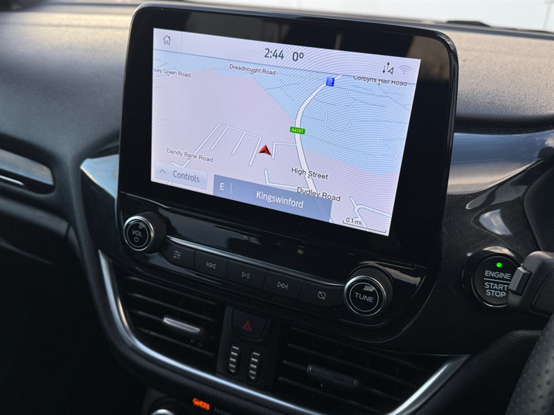 0L petrol engine, meeting Euro 6 emissions standards. Inside, you'll find a well equipped cabin featuring manual air conditioning for your comfort, and the SYNC 3 system with navigation, which seamlessly integrates with both Android Auto and Apple CarPlay for all your connectivity needs. For added convenience and safety, it includes rear parking distance sensors and striking LED headlights with integrated daytime running lights and fog lights. The Ford Fiesta ST Line offers a dynamic driving experience, highlighted by its brisk 0-62mph acceleration in just 10.8 seconds. This performance, combined with its modern technology and single owner provenance, positions this particular Fiesta as an excellent choice. The inclusion of features like SYNC 3 with navigation and LED lighting demonstrates a higher specification, setting it apart from other vehicles in its class and ensuring a more enjoyable and connected journey.