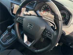 - Perforated Leather Flat-Bottomed Steering Wheel with Red Stitching and FR Logo with Leather Gear Knob